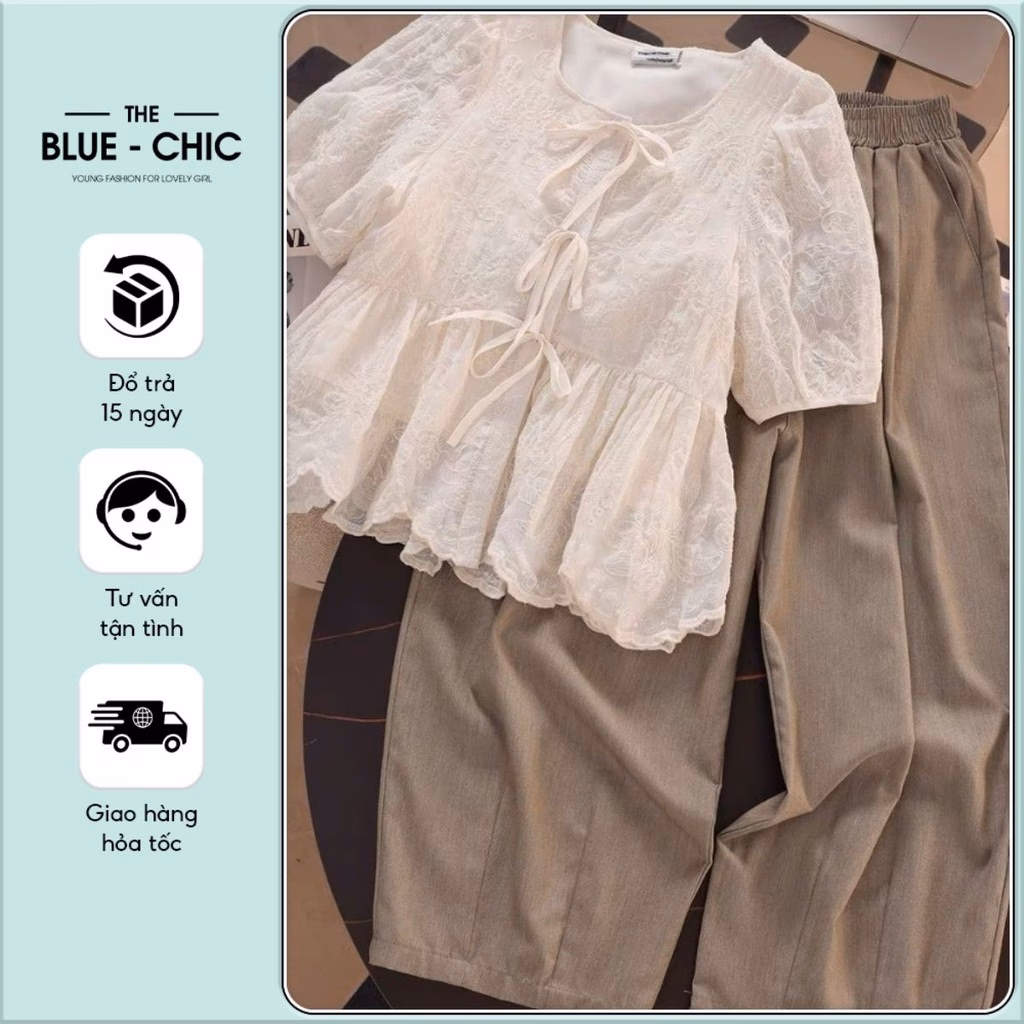 🔥 Set đồ nữ Azami áo babydoll thêu hoa phối quần vải xước Nhật phong cách retro tiểu thư – Blue Chic đang giảm giá!