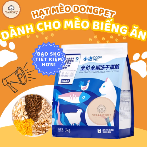 🔥 [GÓI TO 5KG] Thức ăn hạt cho mèo DONGPET bịch 5kg mix thịt sấy khô cao cấp chuyên dành cho mèo kén ăn đang giảm giá!